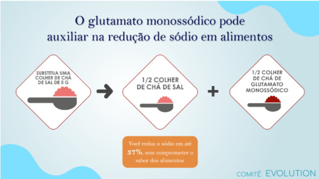 A partir desta comparação, pode-se verificar que as substâncias Umami podem ajudar a reduzir a quantidade de sódio nas preparações. Podemos substituir, por exemplo, uma certa quantidade de sal (1/2 colher de chá) por glutamato monossódico, o qual é vendido puro nos supermercados (ROSA et al., 2021). Veja na figura ao lado como isto pode acontecer sem que as preparações percam sabor e também para que tenham quantidades adequadas de sódio, não deixando que este nutriente, que é tão importante para nossa sobrevivência atrapalhe de alguma maneira nossa saúde, pois afinal de contas, para termos saúde, o prazer da alimentação é necessário para os encontros hedônicos da nossa vida.