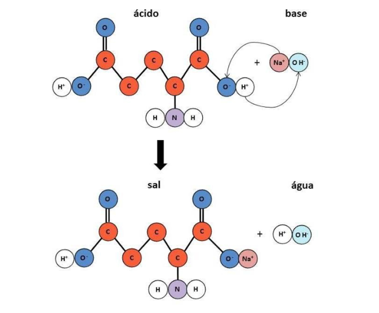 Reação de neutralização do ácido glutâmico