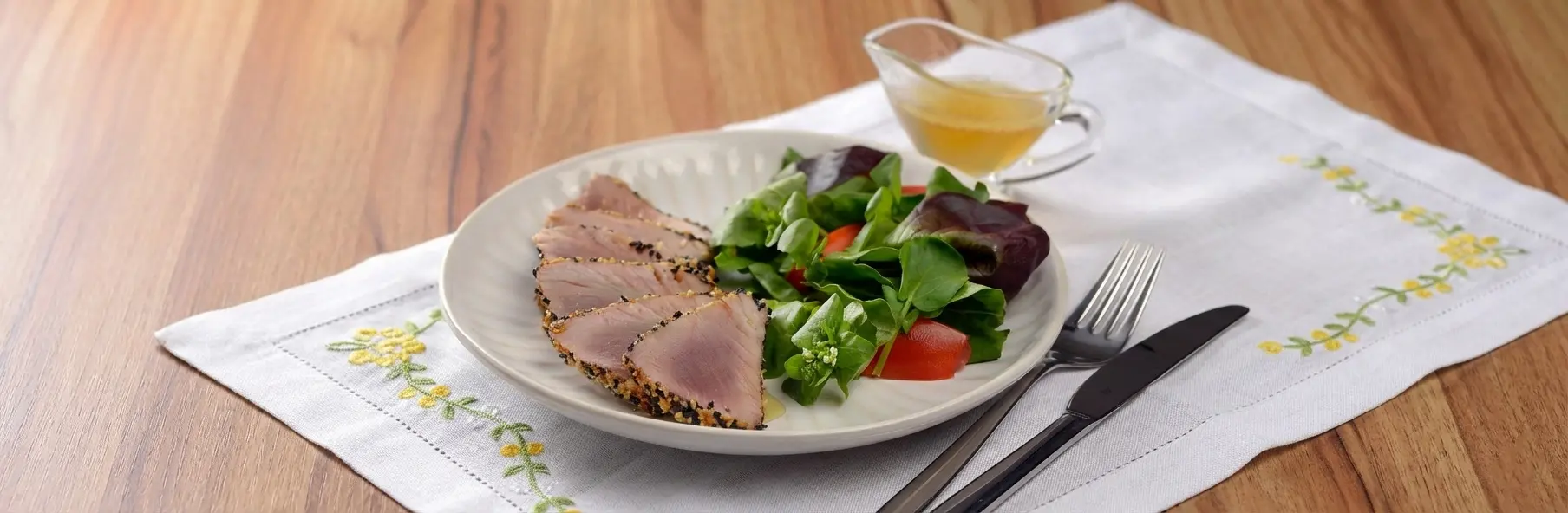 Saboroso, leve e fácil de fazer! Essa receita com atum fresco é rica em ômega 3 e repleta de ingredientes umami.