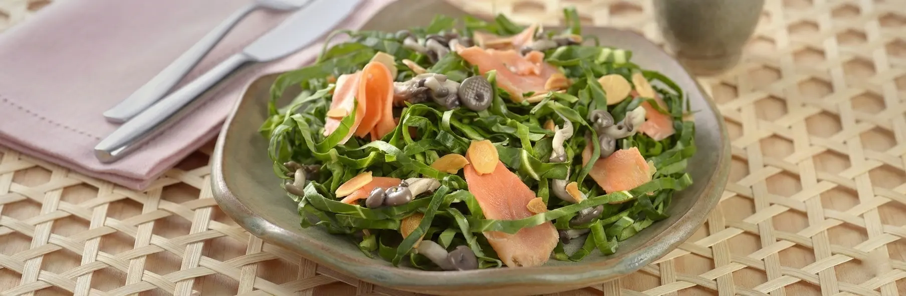 Esta vai ser a sua nova salada preferida! Com salmão, couve e shimeji, a receita é um verdadeiro prato cheio de umami.