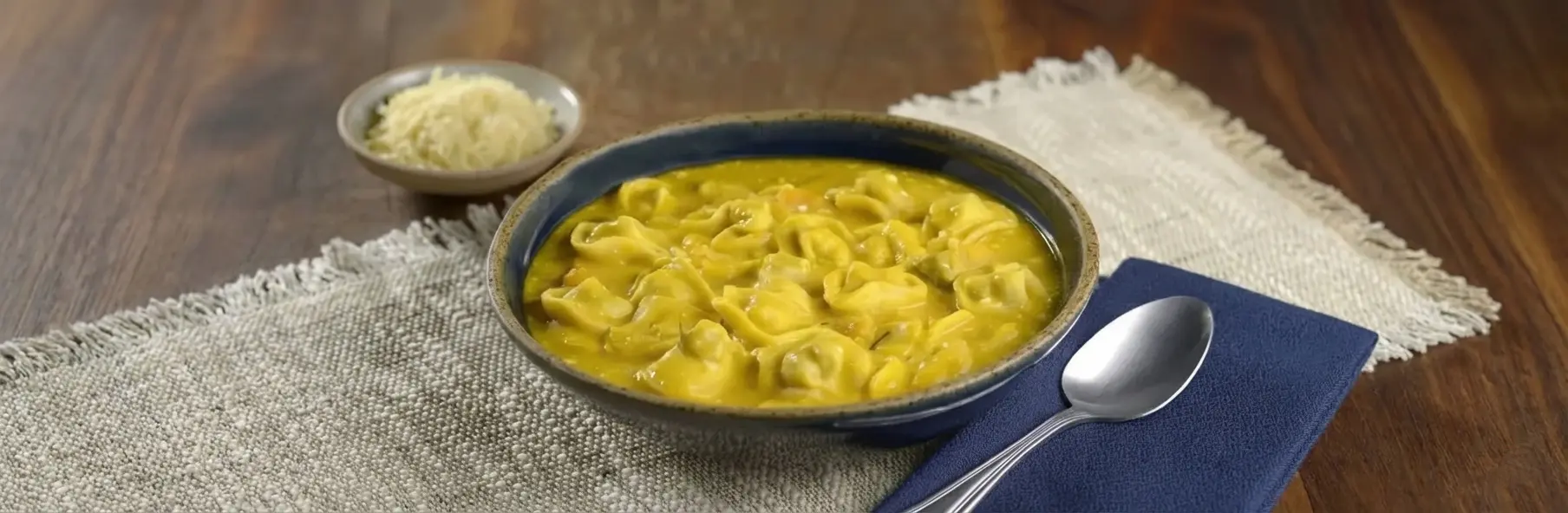Nossa receita de sopa de abóbora cremosa é preparada com abóbora japonesa e ganha um toque especial com capeletti de carne e cream cheese. O resultado é um prato irresistível que fica pronto em apenas 25 minutinhos.